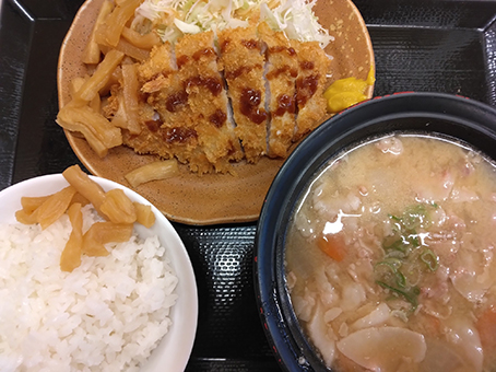 1人反省会。「か〇や」でトン汁定食。値上がりしたとはいえ、1000円以下とお安く庶民の味方です。「相変わらず、トッピングの漬物が多いですね、館長!! 血圧が上がりますよ!!」という声が聞こえてきそうですが……明日の「博物館まつり」も頑張りますよ。