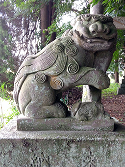 こちらは、左側の阿形です。大正8年設置、石工:和知繁雄。右前足の下は上半身が欠けてしまっていますが子獅子だと思います。