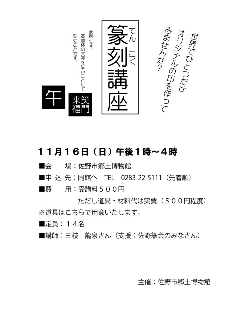 申込方法:郷土博物館にお電話にて(TEL0283-22-5111)